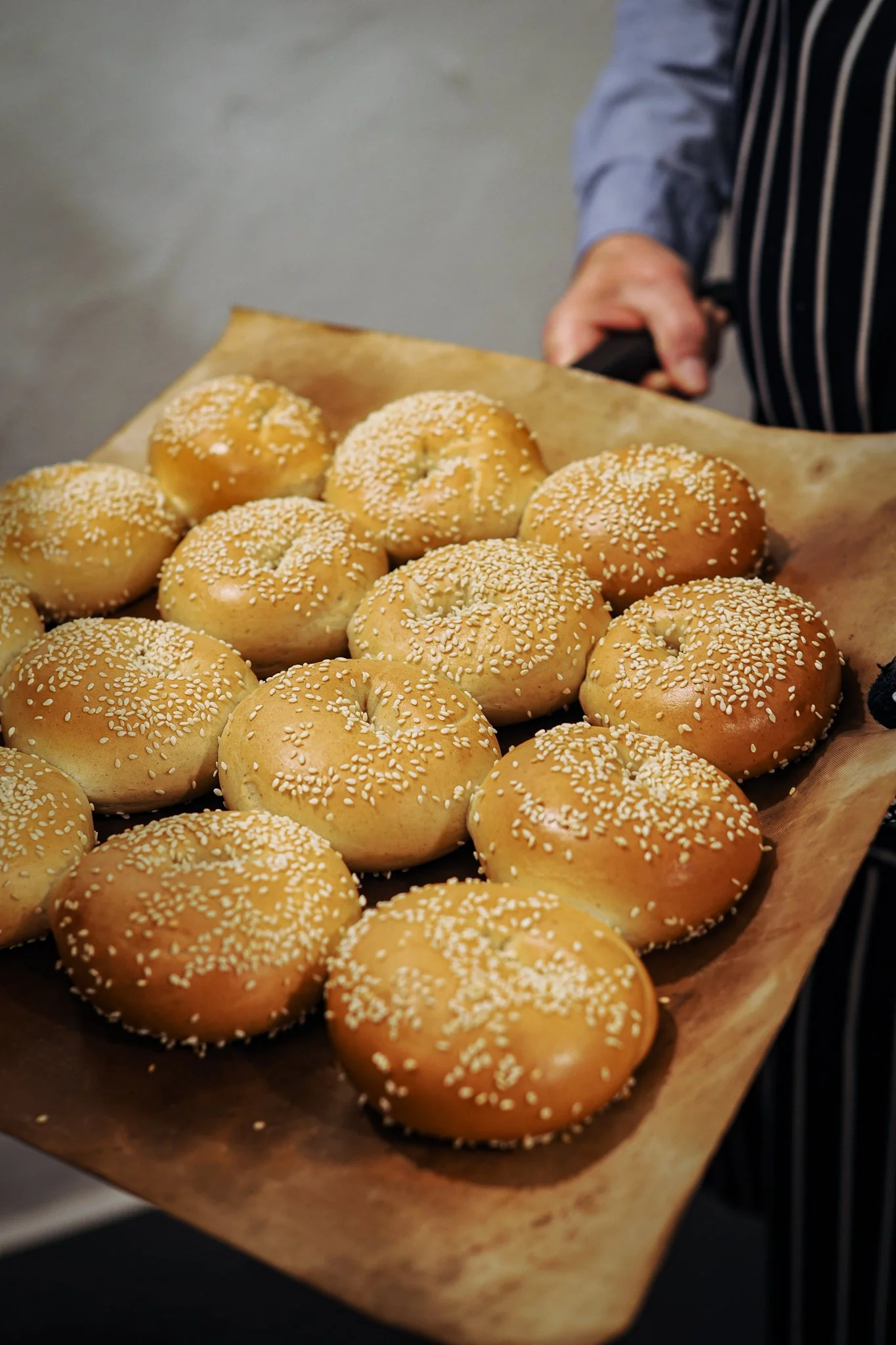 Our original bagel: New York-style 12-hour smoked salt beef + gherkins and your choice of mustard